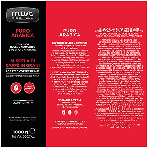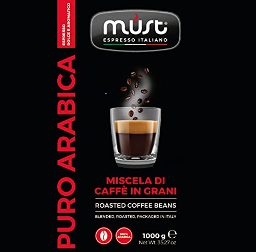 MUST - حبوب قهوة عربية نقية 100% مناسبة للموكا والإسبريسو الإيطالي من ماست، وزن 1 كيلوجرام (صنعت في إيطاليا)