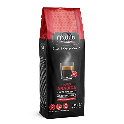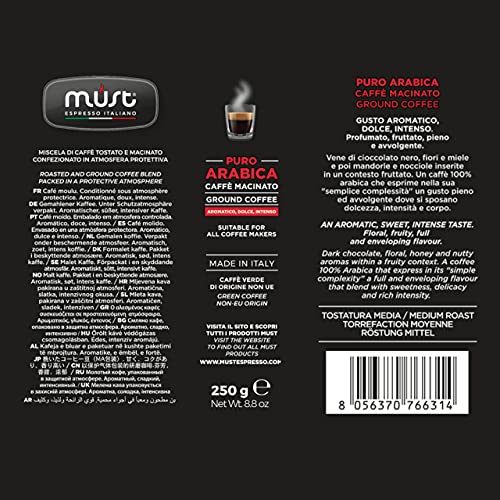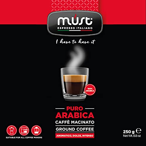 MUST - قهوة مطحونة بيور ارابيك 100% من ماست عبوة 250 جرام بن مطحون موكا سيستم إسبريسو إيطالي صنع في إيطاليا