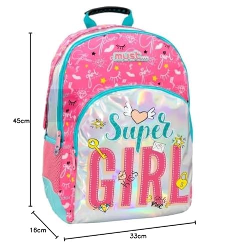 MUST - ماست شنطة ظهر مدرسية سوبر جيرل 3 حافظات، متعدد الألوان