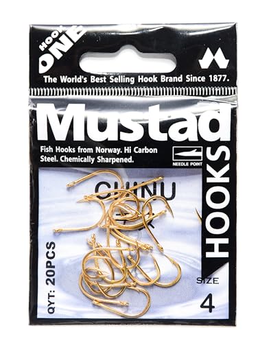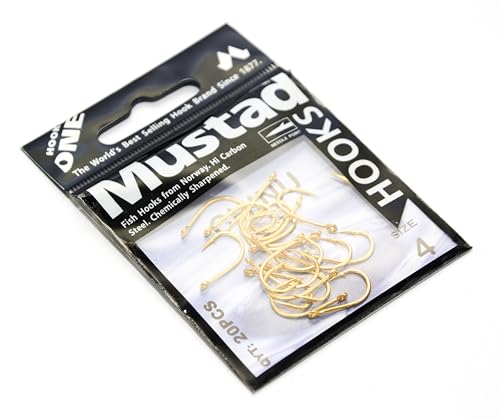 Generic - خطافات صيد أسماك دائرية لصيد الأسماك في المياه المالحة مثل الباس، مصنوعة من فولاذ كربوني عالي الجودة من موستاد، لون ذهبي، عبوة من 20 قطعة، موديل 375-S10706NPSSG-4، مقاس: 4