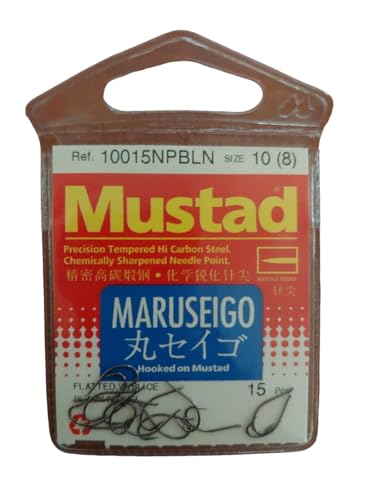 Generic - خطافات صيد سمك بإبرة ماروسيجو من موستاد، خطاف دائري للصيد في المياه المالحة من النحاس والستيل عالي الكربون - 15 قطعة، أسود، نيكل، 375-S10015NPBLN/8/، الحجم: 10 (8)