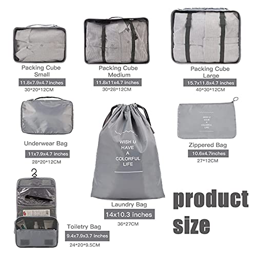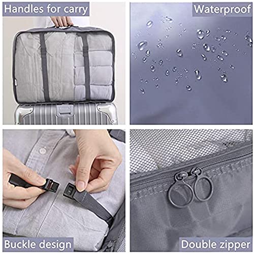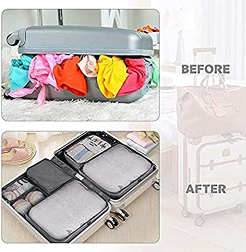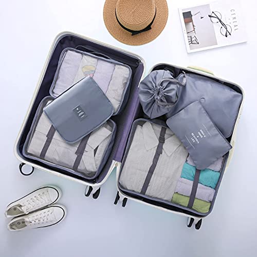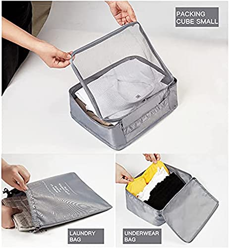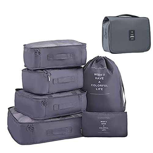 MUSTYSP - مكعبات تعبئة للسفر من 7 قطع، مكعبات سفر جديدة لحقيبة السفر خفيفة الوزن حقيبة اساسية للسفر مع حقيبة كبيرة لمستحضرات التجميل والملابس والاحذية ومستحضرات التجميل، رمادي، من موستيسب، بلاستيك