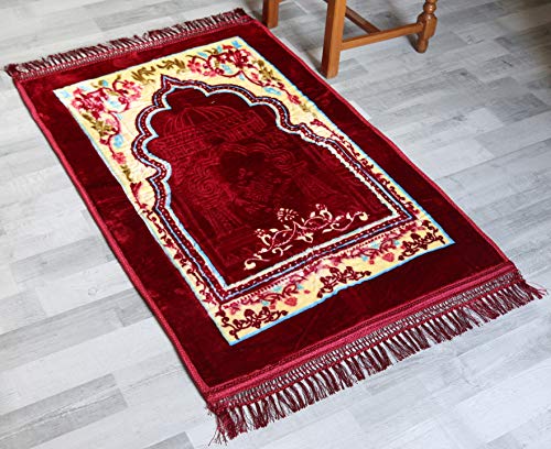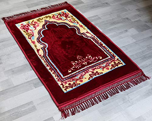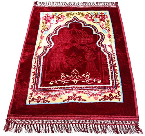 Musuly - سجادة صلاة للمسلمين بلون احمر مقاس 120×80 سم، بولي بروبلين