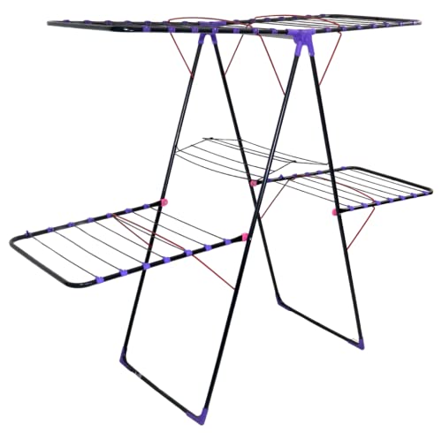 MuswannaA - رف تجفيف ملابس جامبو مكون من دورين هيل ميتال متعدد الالوان المقاس: طول 184 × عرض 60 سم