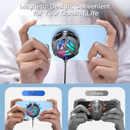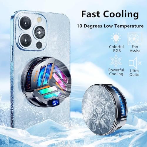 GQ - مبرد موبايل مغناطيسي صامت ومشتت حرارة مع مصابيح ليد ار جي بي ومشبك عالمي للألعاب ومروحة تبريد شبه موصلة مغناطيسية لآيفون وأندرويد واي باد والتابلت