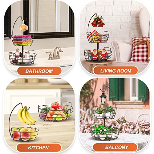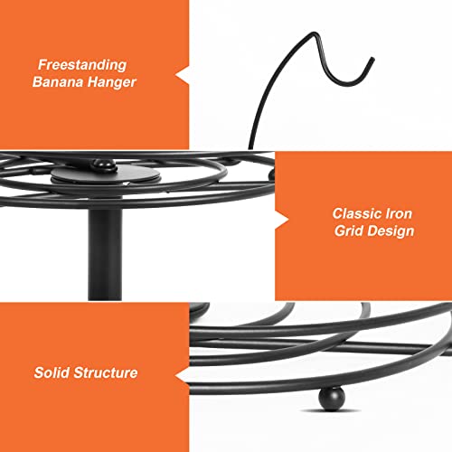 Mutool - رفوف فواكه من طبقتين، سلة فواكه مع شماعة موز، سلل معدنية للفاكهة والخضروات، مثالية لحمل الفواكه والخضروات والبيض والوجبات الخفيفة (أسود)