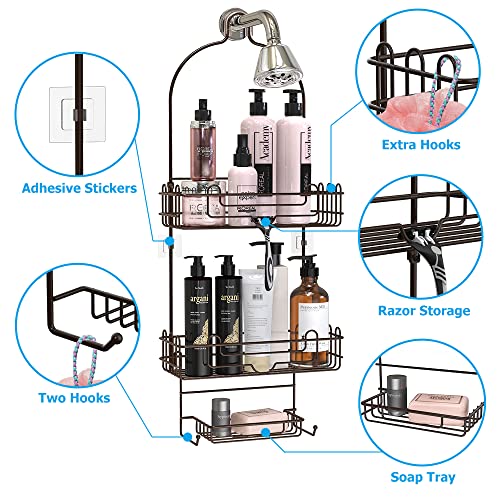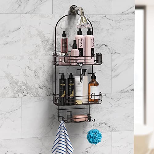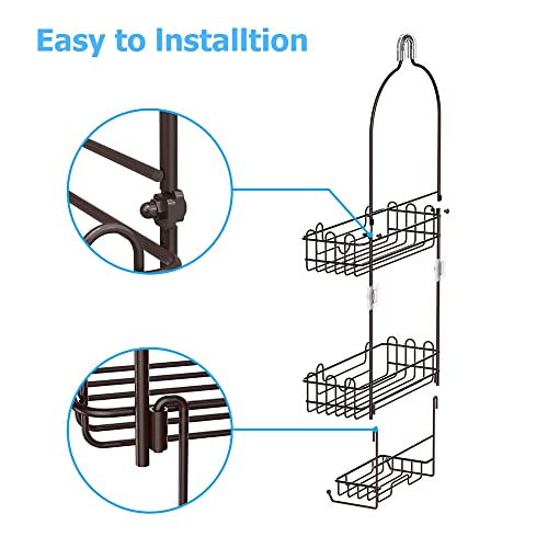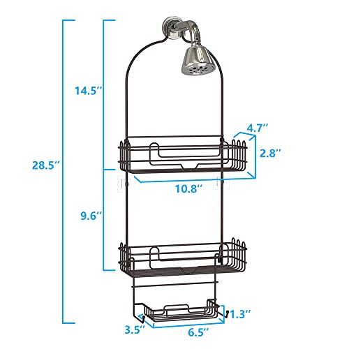 - 【سعة كبيرة】ستعمل السلتان الكبيرتان وطبق الصابون على زيادة مساحة التخزين لمستلزمات الاستحمام الخاصة بك. خطافات مدمجة لشفرات الحلاقة والوسائد ومناشف الاستحمام وأكثر من ذلك تجعل حامل الدش هذا أكثر تنوعًا.