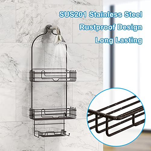 Mutool - حامل راس دش معلق من موتول من 3 طبقات، منظم رف دش للحمام مقاوم للصدا SUS201 من الستانلس ستيل بدون ثقب للمرحاض والحمام وغرفة الاستحمام، برونزي