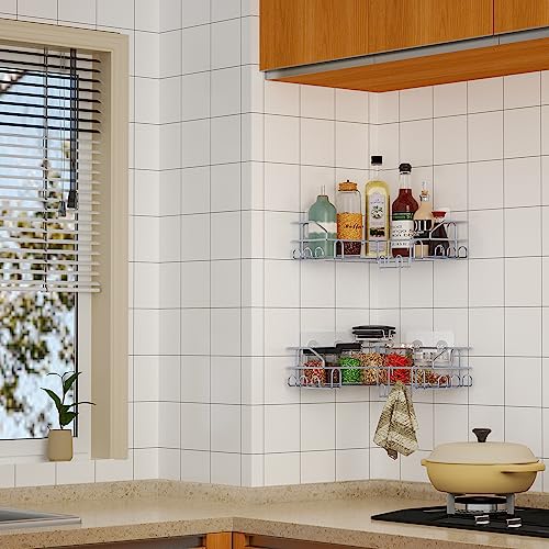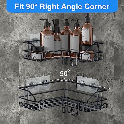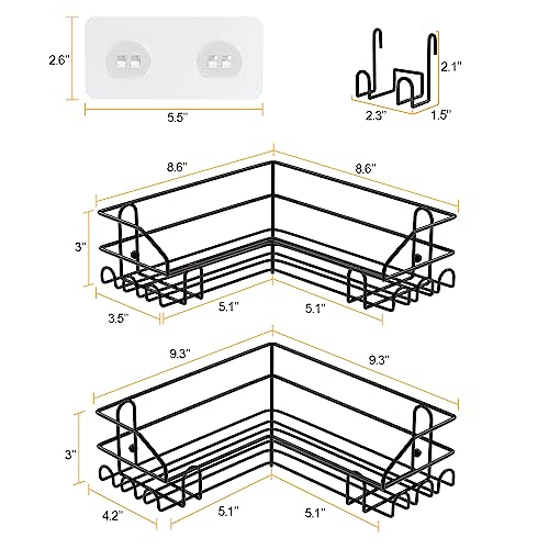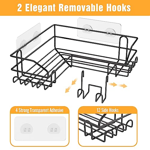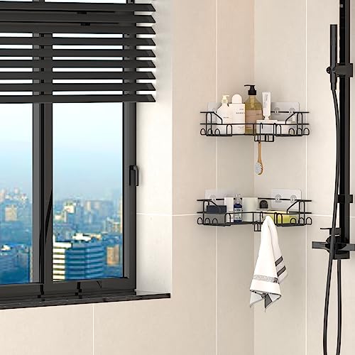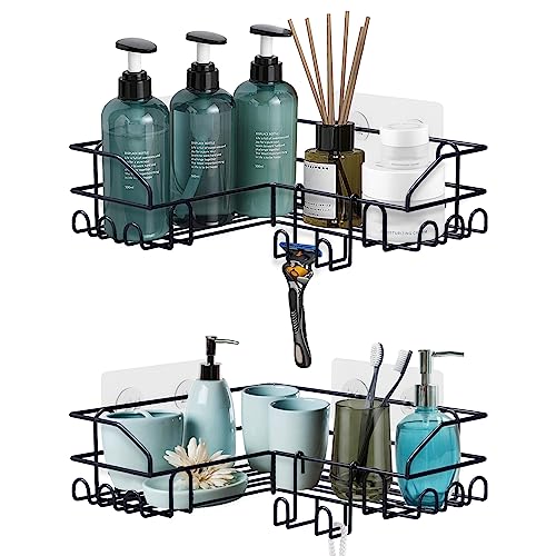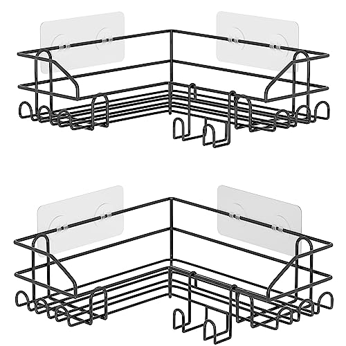 Mutool - حامل دش زاوية معدني من موتول مجموعة 2 منظم مع وسادة لاصقة رف بدون حفر للحمام والمطبخ والمرحاض اسود