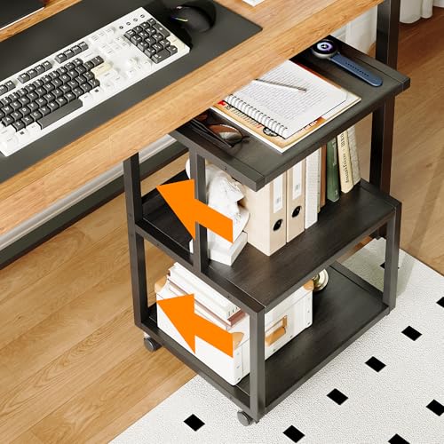 MUTUN - حامل طابعة من 3 طبقات من موتون، طاولة طابعة مع عجلات، عربة طابعة معدنية، رف طابعة للمكتب والمنزل والمدرسة والدراسة، خزانة طابعة للفاكس والنسخ، اسود