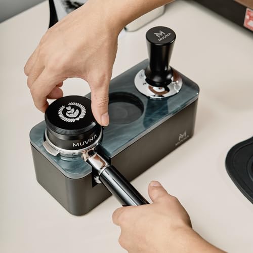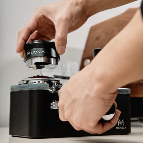 MUVNA - موزع قهوة اسبريسو 58.5 ملم، جهاز تسوية إسبريسو بارتفاع قابل للتكيف مع الجاذبية، يناسب فلاتر القهوة بمقاس 58 ملم (أسود) من موفنا