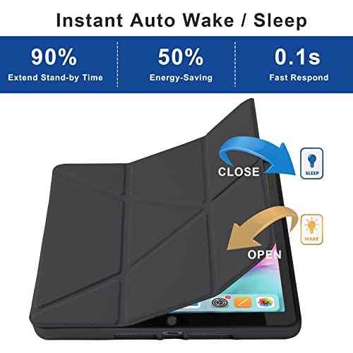MuyDouxTech - جراب سيليكون أوريجامي ناعم حريري بخاصية سكون/تنشيط مع حامل قلم وزوايا مشاهدة متعددة 5 في 1 لجهاز اي باد 10.2 بوصة الجيل التاسع والثامن والسابع (2021/2020/2019) من موي دوكس تيك، سيلف دريم/استل ايه