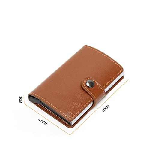 MUYUN - ميون جاكيت جلد للنساء والرجال، حامل بطاقات ائتمان مصنوع من خليط معدني من الالومنيوم لحفظ بطاقات الهوية والاعمال، محفظة من الجلد المعدني للرجال (اللون: بني)