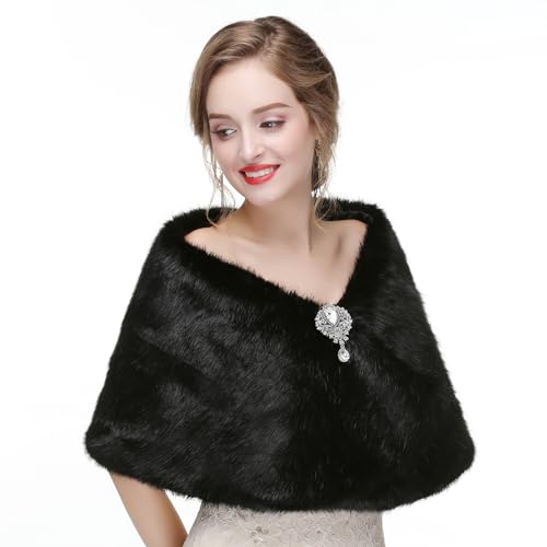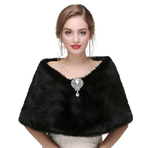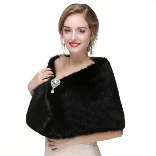 Muzhilun - شال من الفرو الصناعي بأكمام طويلة من موزيلون، شال كيمونو فرو مع بروش، لفستان الحفلات للخريف والشتاء، شال عصري للعرائس وحفلات الاستقبال والدفء من البرد