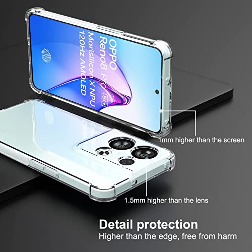 Muzz - ماز جراب لموبايل اوبو رينو 8 برو بلس شبكة الجيل الخامس 5G شفاف مقاوم للخدش بزوايا معززة من البولي يوريثين الحراري والمطاط والسيليكون الناعم + 5G 2022 حافظة بسيطة