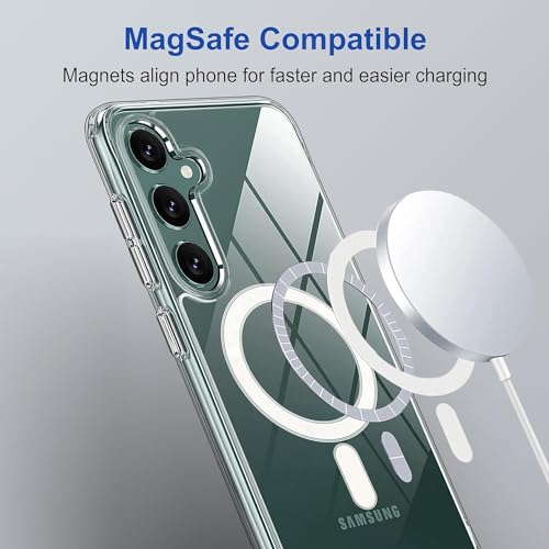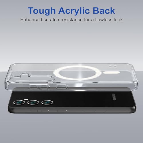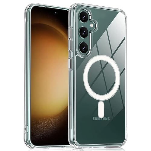 - جراب مغناطيسي شفاف لموبايل سامسونج جالاكسي S23 FE متوافق مع ماج سيف، جراب خلفي صلب شفاف مضاد للصدمات بإطار من السيليكون ممتص للصدمات لهاتف سامسونج جالاكسي S23 FE 2023