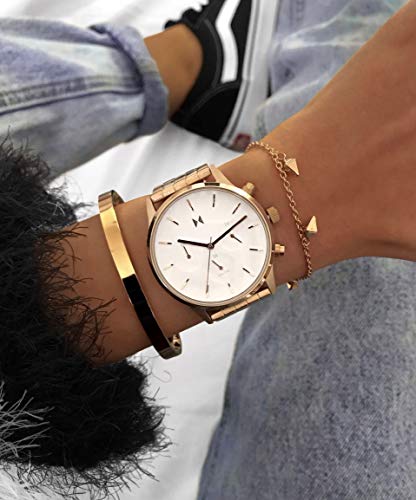 MVMT - ساعة أنالوج كرونوغراف بسوار من الفولاذ المقاوم للصدأ للنساء من ام في ام تي، لون ذهبي