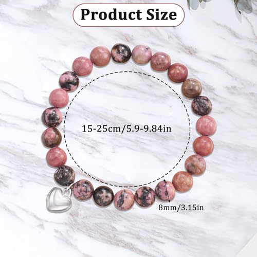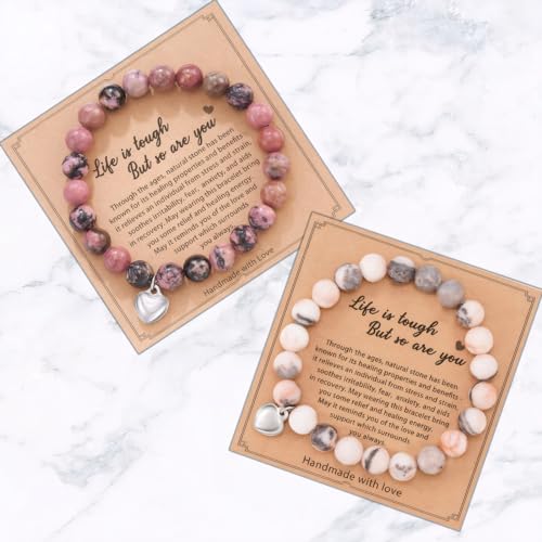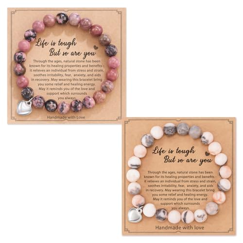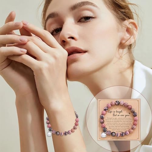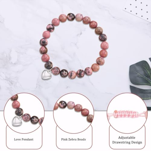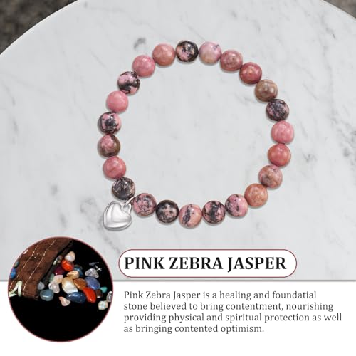 Mxlfdc - سوار لعلاج القلق من ام اكس ال اف دي سي علاجي الكريستال الطبيعي حجر زيبرا زهري وأحمر دراك خرز الأحجار الكريمة المرنة مع تعليقة على شكل قلب وبطاقة رسائل للنساء والفتيات