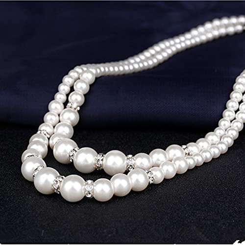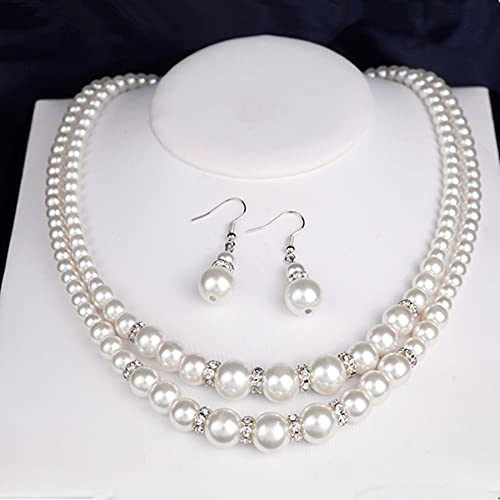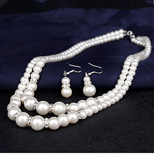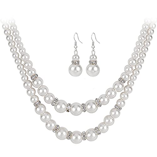 MXXGMYJ - 2 قطعة مجموعات مجوهرات اللؤلؤ للنساء بنات طبقات قلادة اقراط مجموعة الذكرى السنوية هدايا عيد الميلاد لام ابنة زوجة صديقة، أبيض، ال اي سي من MXXGMYJ