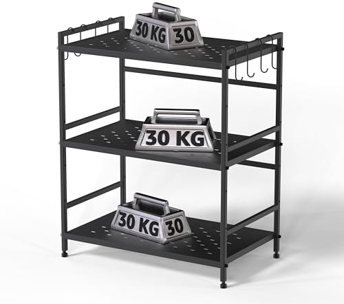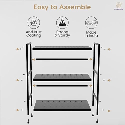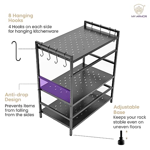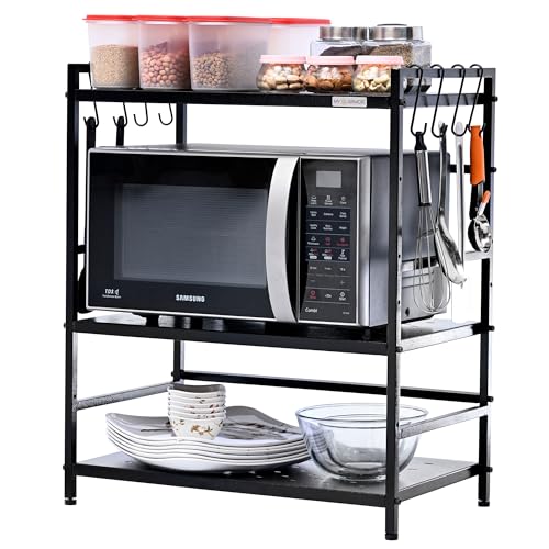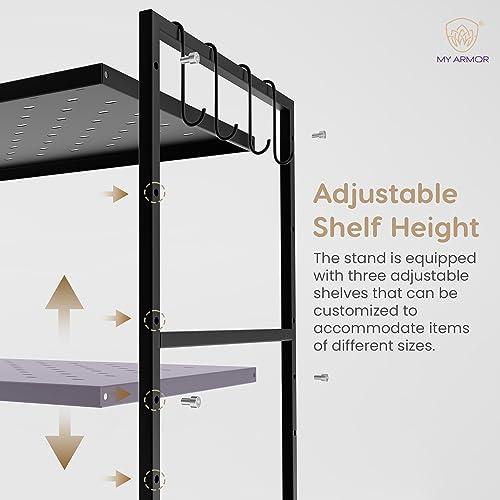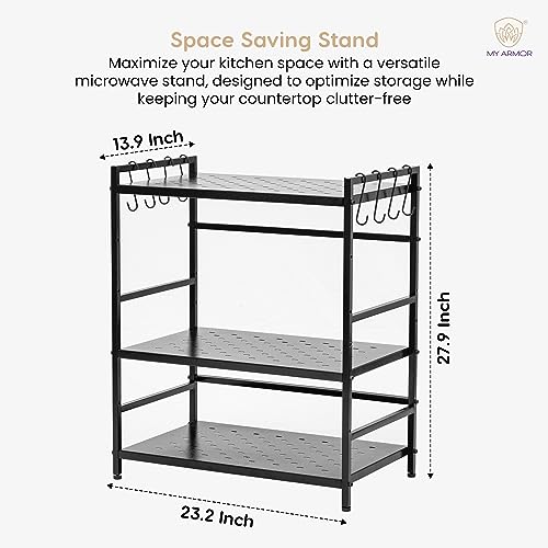 MY ARMOR - حامل لفرن ميكروويف معدني او تي جي من 3 طبقات لمنضدة المطبخ منظم خزانة أدوات رف لحمل الأطباق للمنزل والمطبخ - أسود ماي ارمور