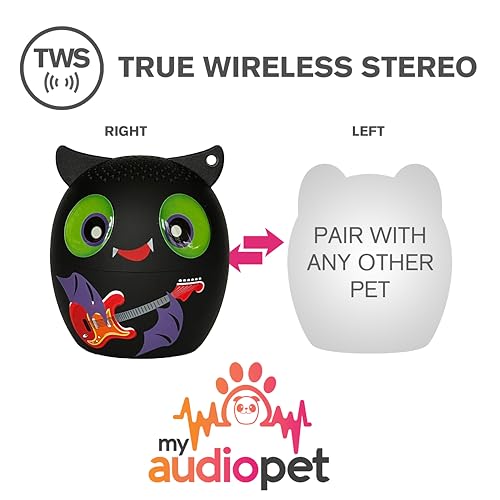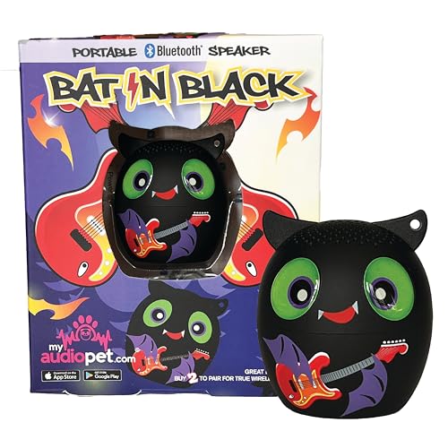 My Audio Pet - مكبر صوت بلوتوث صغير بتصميم حيوانات للأطفال من جميع الأعمار، صوت ستيريو بتقنية ترو وايرليس - سيمفونية محمولة لسونيك بليس أثناء التنقل من ماي اوديو بيت صوت غني قوي لملء الغرفة (بتصميم وطواط بلون أسود).