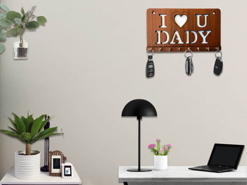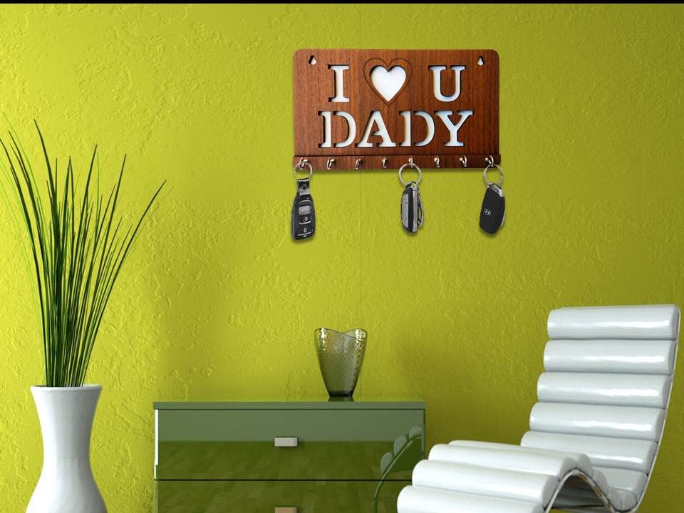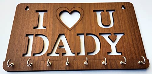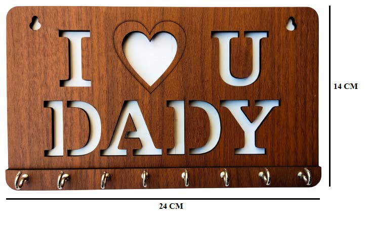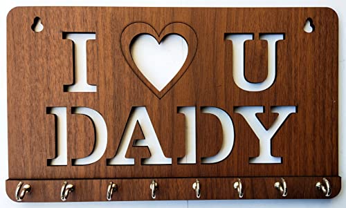 My Dream Carts - حامل مفاتيح بتصميم عبارة I Love You Dady للجدار من ماي دريم كارتس، شماعة سلسلة مفاتيح خشبية هدية لأفضل والد في العالم، شماعة مفاتيح لديكور المنزل، حامل سلسلة مفاتيح، حامل منظم مفاتيح خشبي