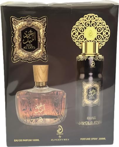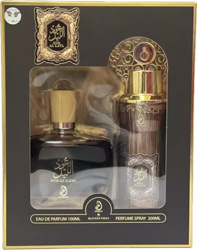 • مجموعة هدايا عطر عود الليل للجنسين او دي بارفان 100 مل وبخاخ 200 مل من ماي برفيومز.