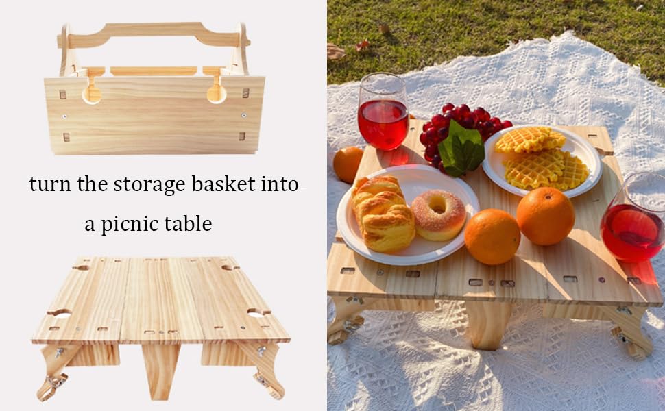 - 【طاولة سلة نزهة 2 في 1】 طاولة النزهة القابلة للطي المصنوعة يدويًا يجب اقتناؤها لجميع محبي النبيذ. مثالية لمهرجانات النبيذ في الهواء الطلق والنزهات العائلية والتخييم والشواطئ أو لمجرد قضاء أمسية هادئة في الفناء الخلفي الخاص بك!