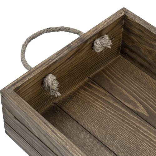 MyGift - صندوق تخزين مزخرف من الخشب باللون البني الريفي مع مقابض حبال، صندوق صغير مفتوح من الأعلى لملحقات الحمام والكتب والحرف اليدوية والفواكه من ماي جيفت، 33 سم