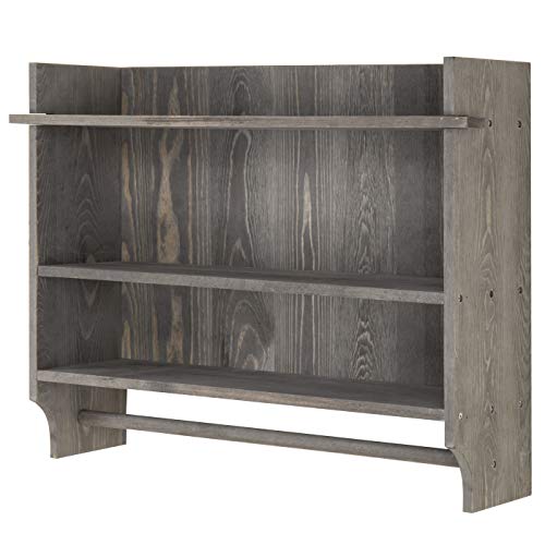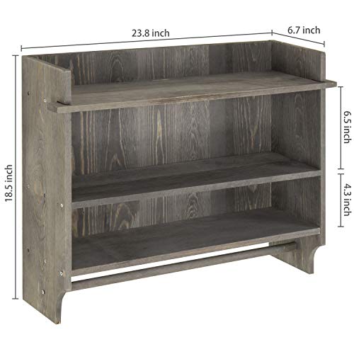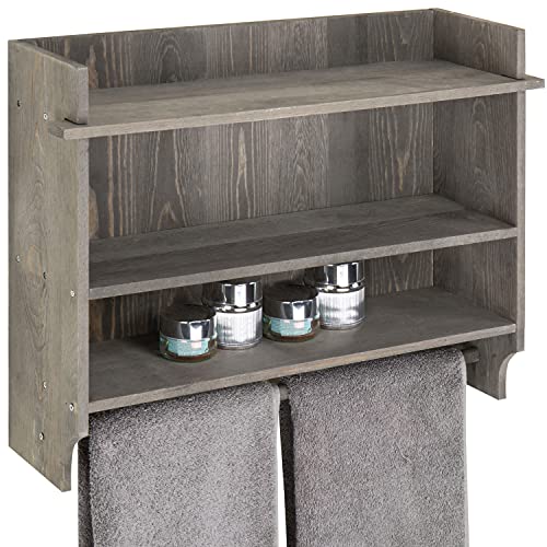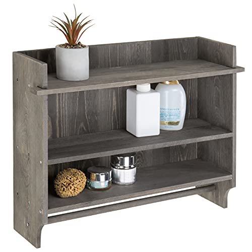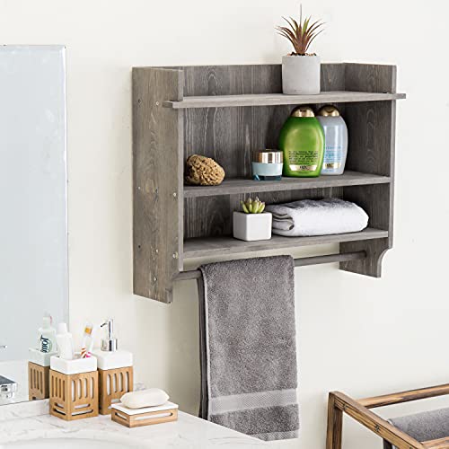 MyGift - رف تخزين وتنظيم اغراض الحمام من ماي جيفت، بتصميم خشبي بنمط ريفي يثبت على الحائط مع رفوف من 3 طبقات ولوح تعليق فوط اليد