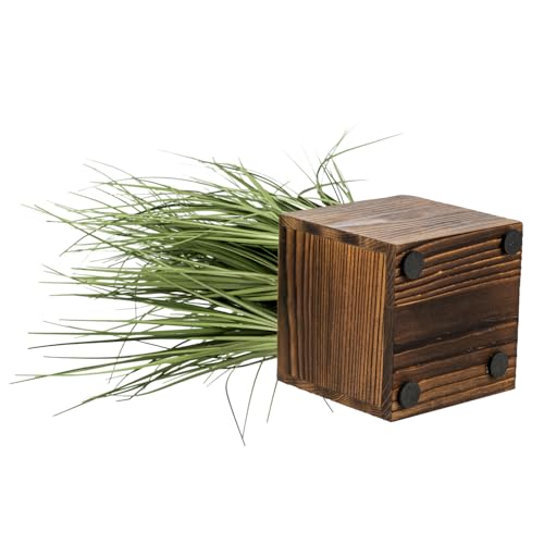 - ثلاثة من العشب النابض بالحياة في صناديق خشبية بنية اللون تجلب جمالية منزل المزرعة الريفية التي يمكن عرضها معًا أو بشكل فردي على أي طاولة أو سطح مكتب أو رف أو رف أو عتبة النافذة **تتضمن وسادات قدم سفلية**.