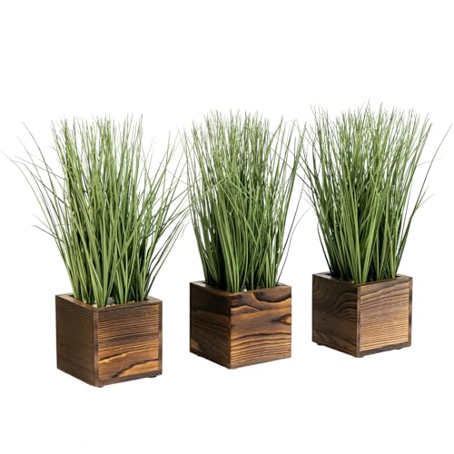 - مجموعة من 3 نباتات عشب صناعي حديثة في حاويات خشبية صلبة مربعة مقاس 4 انش بلمسة نهائية محترقة لإضفاء لمسة ريفية عصرية في أي منزل أو مكتب أو عمل.