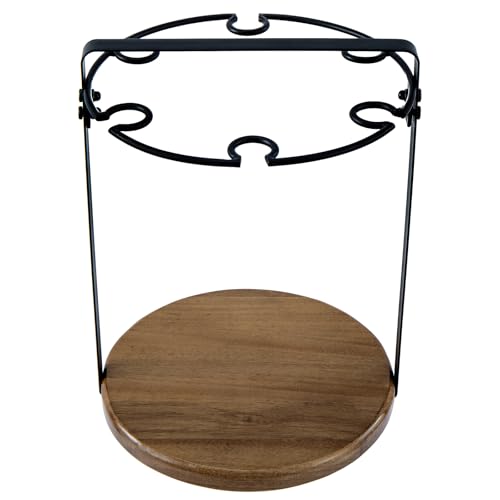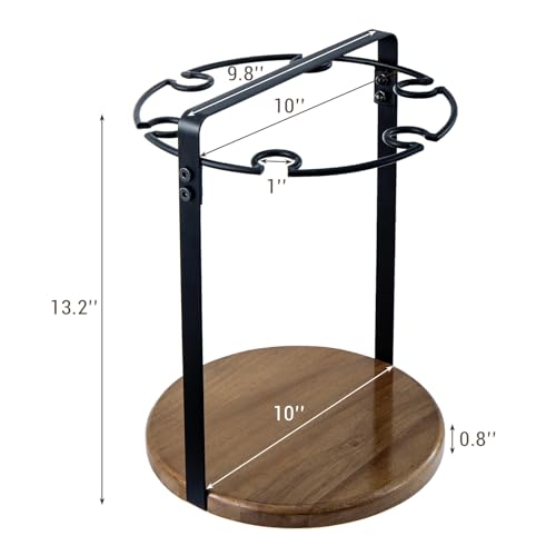 MyGift - ماي جيفت رف تعليق زجاجي معدني اسود غير لامع من خشب الجوز الصلب، حامل اكواب يثبت على الحائط لـ 6 اكواب