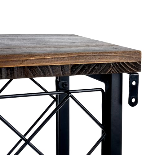 - مزيج من سطح الطاولة الخشبي الصلب الحقيقي والإطار المعدني الأسود المطفي يبرز لمسة صناعية حضرية، مع إضافة مساحة تخزين إضافية لأكواب النبيذ أو الملحقات أو الفتاحات أو العناصر الزخرفية.