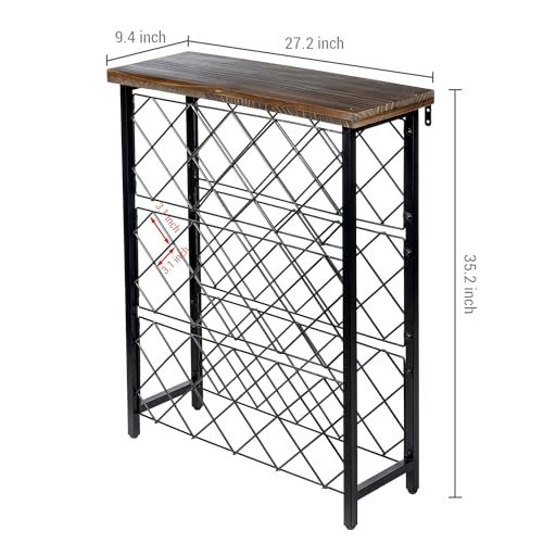 MyGift - رف مشروبات بسعة كبيرة 42 زجاجة من ماي جيفت، حامل أرضي قائم بذاته من المعدن الصناعي الحديث متعدد الطبقات، بلمسة نهائية سوداء مطفية مع رف عرض من الخشب الصلب