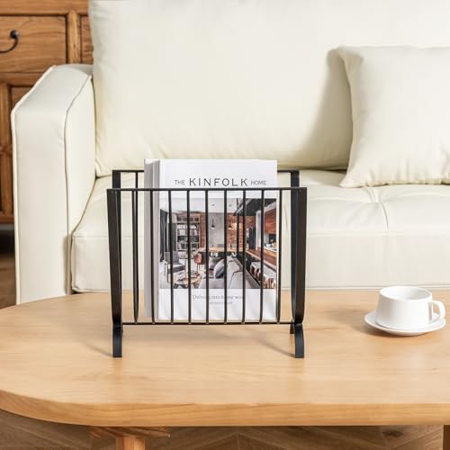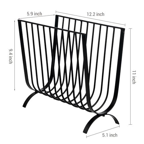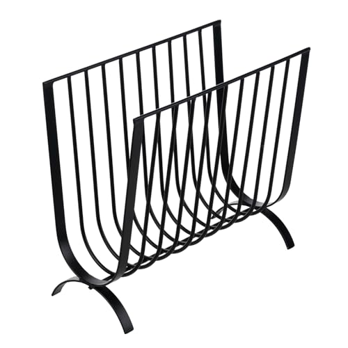 MyGift - ماي جيفت رف مجلات معدني اسود غير لامع، رف مجلات سلكي فاخر بنمط منتصف القرن، سلة معلقة على الطاولة او الارض للمجلات والصحف