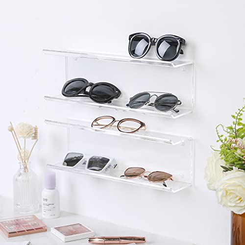MyGift - رف عرض اكريليك شفاف عالي الجودة لنظارات الشمس، يثبت على الحائط مع حافة مائلة، منظم نظارات معلق للمنزل وبائعي التجزئة من ماي جيفت
