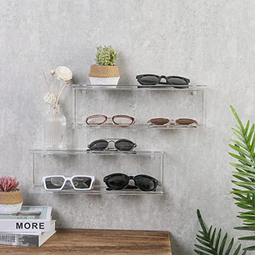 - مجموعة من 2 نظارة شمسية اكريليك شفافة مثبتة على الحائط ورفوف عرض النظارات للاستخدام المنزلي والتجزئة
