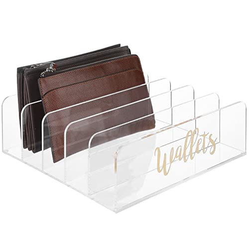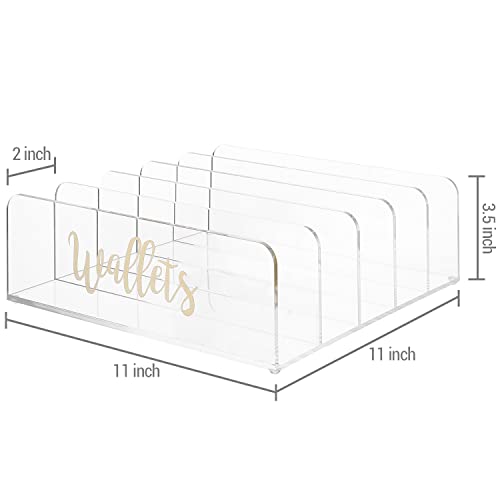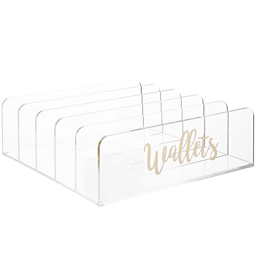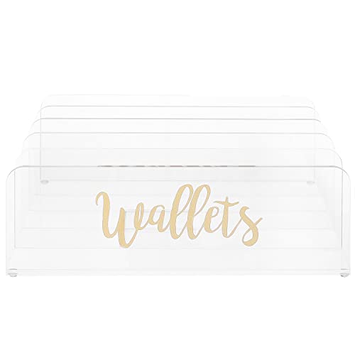 MyGift - حامل محفظة منظم من الاكريليك شفاف عالي الجودة 5 اقسام مع ستيكر لاصق بعبارة Wallets بحواف منحنية بلون نحاسي للخزانة ماي جيفت