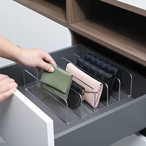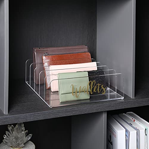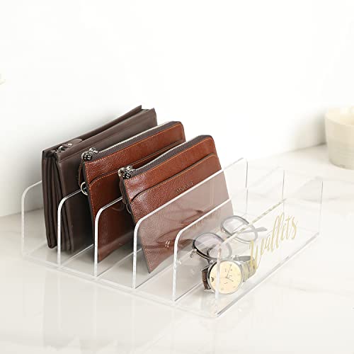 • رف منظم للمحفظة من الأكريليك الشفاف عالي الجودة مكون من 5 أقسام مع ملصق "محافظ" منحني نحاسي يناسب تمامًا أي سطح طاولة أو خزانة أو رف