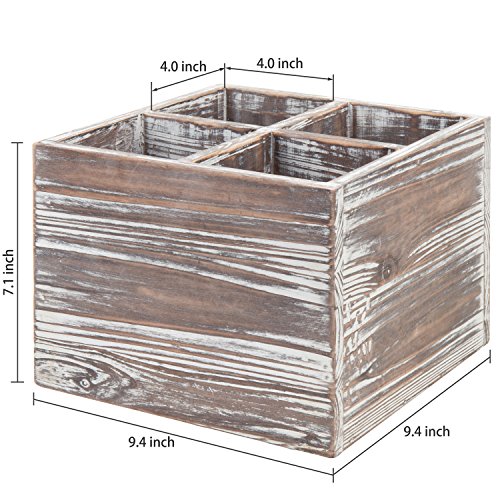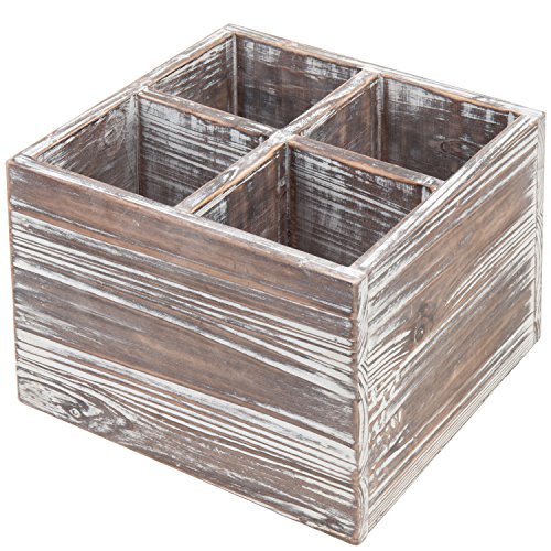 - وعاء خشبي لأدوات المائدة: حامل أدوات خشبي من أربعة أقسام مع لمسة نهائية من الخشب العتيق.