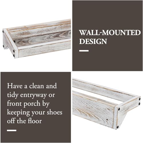 - تضيف هذه الرفوف الجدارية للأحذية لمسة جمالية ريفية آسرة بطلائها الأبيض القديم، وتجمع بين الشكل العتيق والعملية الفائقة، مما يجعلها مثالية لأي مساحة. **تحمل ما يصل إلى 8 أزواج**