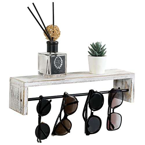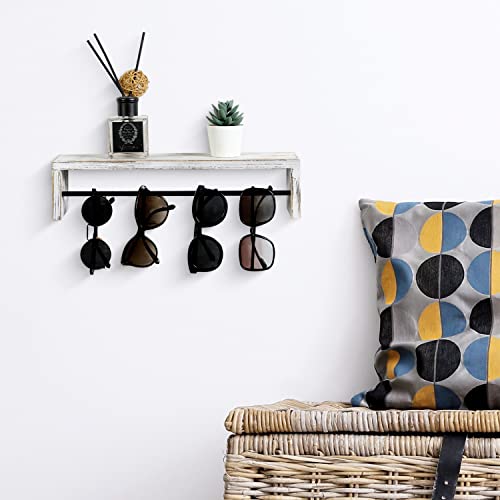 MyGift - ماي جيفت رف تخزين النظارات الشمسية مصنوع من الخشب الابيض يثبت على الحائط مع علوي مزخرف غير لامع