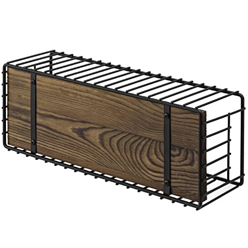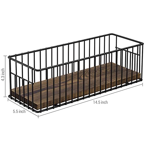 MyGift - ماي جيفت سلة حامل لفافات ورق التواليت، سلك معدني اسود غير لامع صناعي وخشب محروق ريفي فوق الخزان، منظم تخزين مستلزمات الحمام