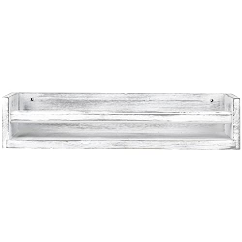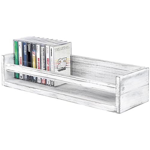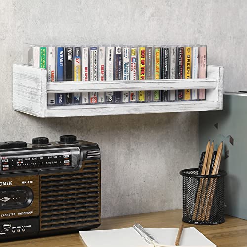 MyGift - ماي جيفت رف تخزين خشبي عتيق باللون الابيض حامل شريط كاسيت ريترو يثبت على الحائط عرض