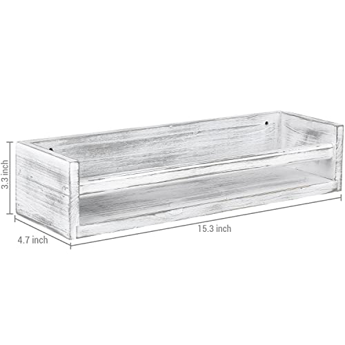 - رف عرض خشبي عتيق يثبت على الحائط مع لمسة نهائية ريفية بيضاء