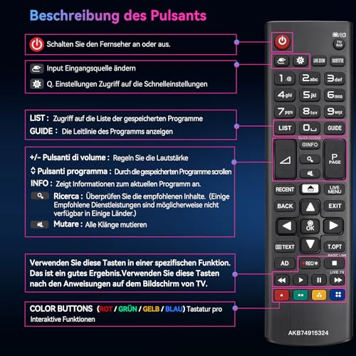 - جهاز تحكم عن بعد بديل لتلفزيون ال جي، حل مثالي لاستبدال جهاز التحكم عن بعد لتلفزيون ال جي القديم أو المكسور. الوظائف متطابقة بنسبة 100% مع وظائف جهاز التحكم عن بعد الأصلي من ال جي.