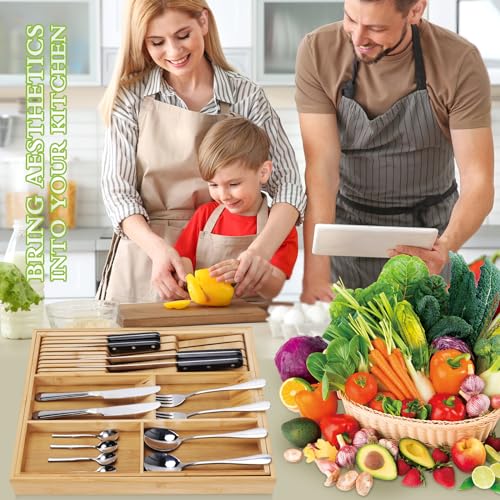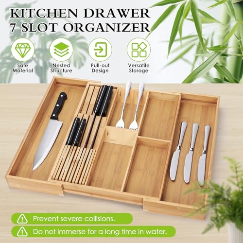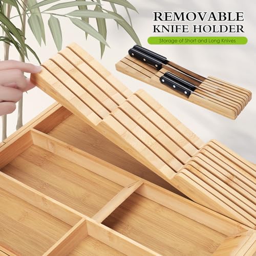 - 【تخزين عملي ومثالي】 يتمدد منظم أدراج أدوات المائدة هذا من 5 فتحات إلى 7 فتحات لتخزين أدوات المائدة والأدوات وأدوات المطبخ الأخرى بسهولة. رف السكاكين قابل للفصل أيضًا، مما يعني أنه يمكنك إزالته وتنظيفه وإعادة تركيبه حسب الحاجة. حافظ على جميع أدوات المطبخ الخاصة بك في المكان الصحيح واجعل الطبخ خاليًا من المتاعب.