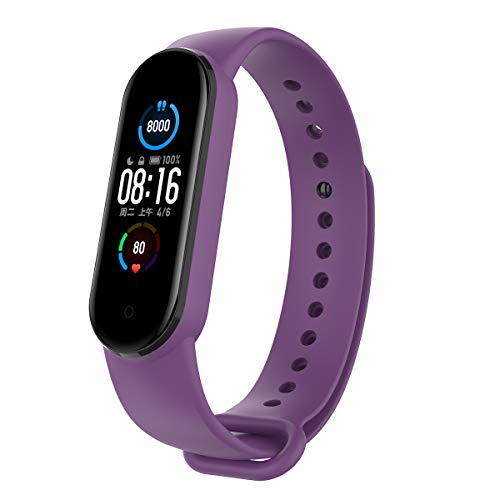 MYKOMI - سوار ساعة من السيليكون متوافق مع شاومي مي باند 5 رياضي بديل للرجال والنساء لتتبع اللياقة البدنية ارجواني .