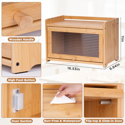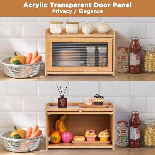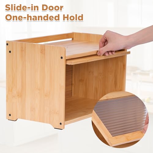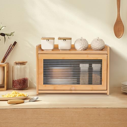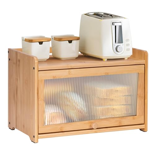 MYOYAY - صندوق خبز من الخيزران لمنضدة المطبخ من ميوياي، حاوية تخزين بسعة كبيرة مع نافذة اكريليك لخزانة المؤن والمزرعة، صندوق خبز للخبز المنزلي